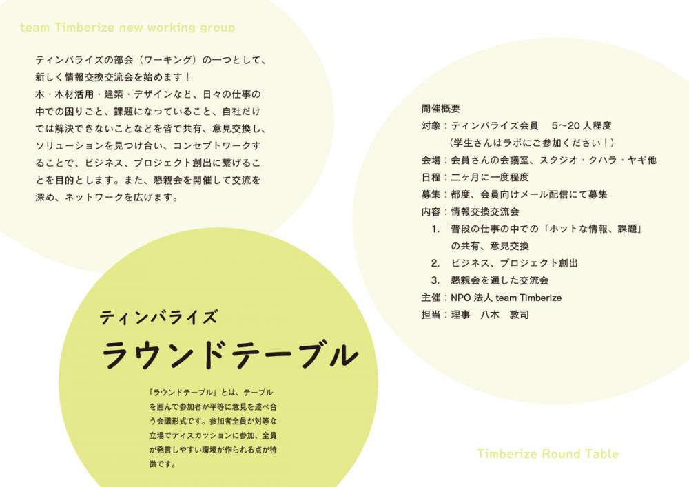 ティンバライズのワーキンググループの一つとして、新しく情報交換交流会をはじめます!