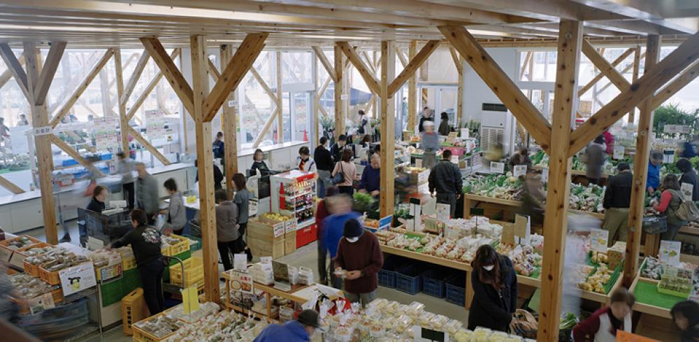 無機質な土間と対比された開放感豊かな室内、フラットな屋根に一度見切られその上に複数の寄棟屋根が乗る独特の外観など、普遍的な「地方の木造」らしからぬ佇まいをもっている。「そのパターンにサインの役割を持たせるべくアレンジ」したという木造ブレースは、その量から建物の見え方を決定づけているが、繰り返しとパターンの効用か、建物全体を記号化するような作用をもたらし、今まで見てきたどの木造建築とも似ていない未体験な空間。