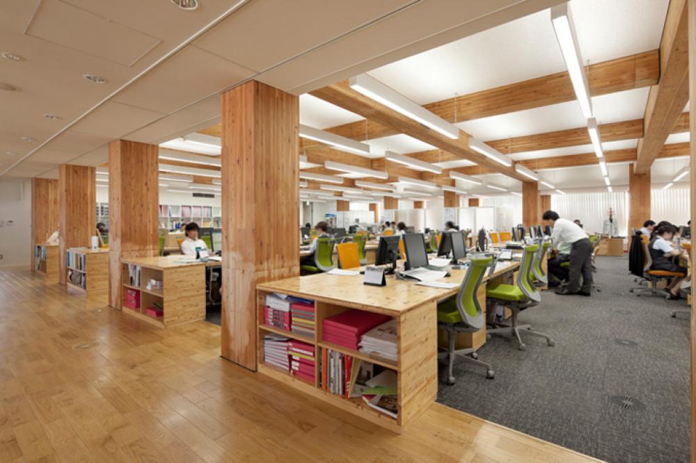 柱とはりに、木質ハイブリッド集成材(柱・はりの鋼材を集成材で耐火被覆した材料)を用いた建物としては、国内最大規模のオフィスビルである。集成材にカラマツを用い、約640㎥の国産材利用を行っている。鋼材と木材をハイブリッドにして使うことにより、木材が自消せず燃え続ける短所と、鋼材が高温になると強度が低下する短所を、お互いにかき消し合い、木材が耐火被覆として燃えるが、鋼材に吸熱されて自消し、鋼材の温度も座屈するほど上がらない仕組みとなっている。