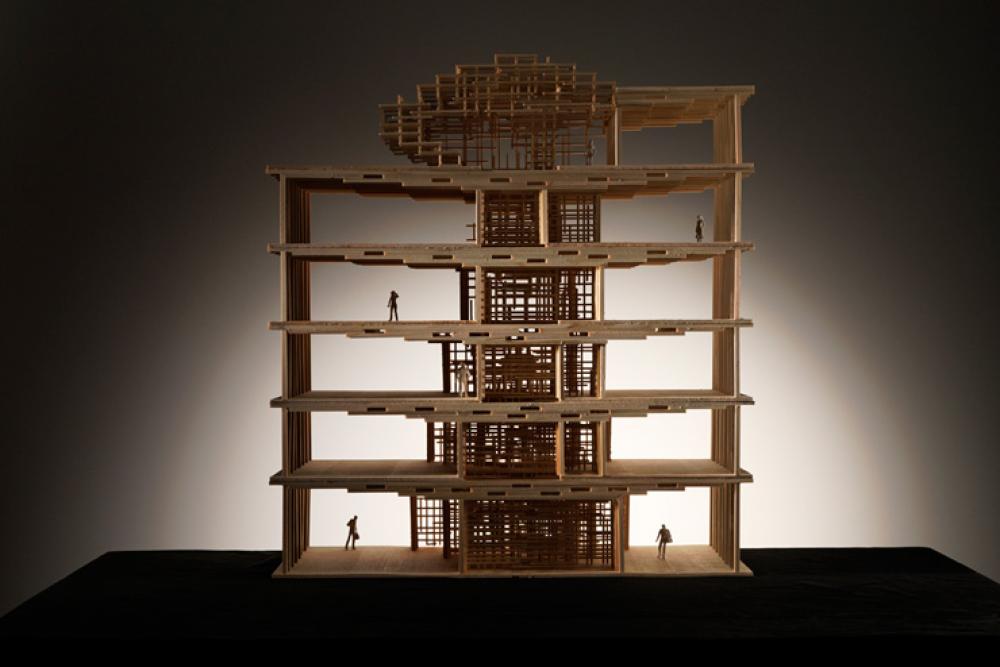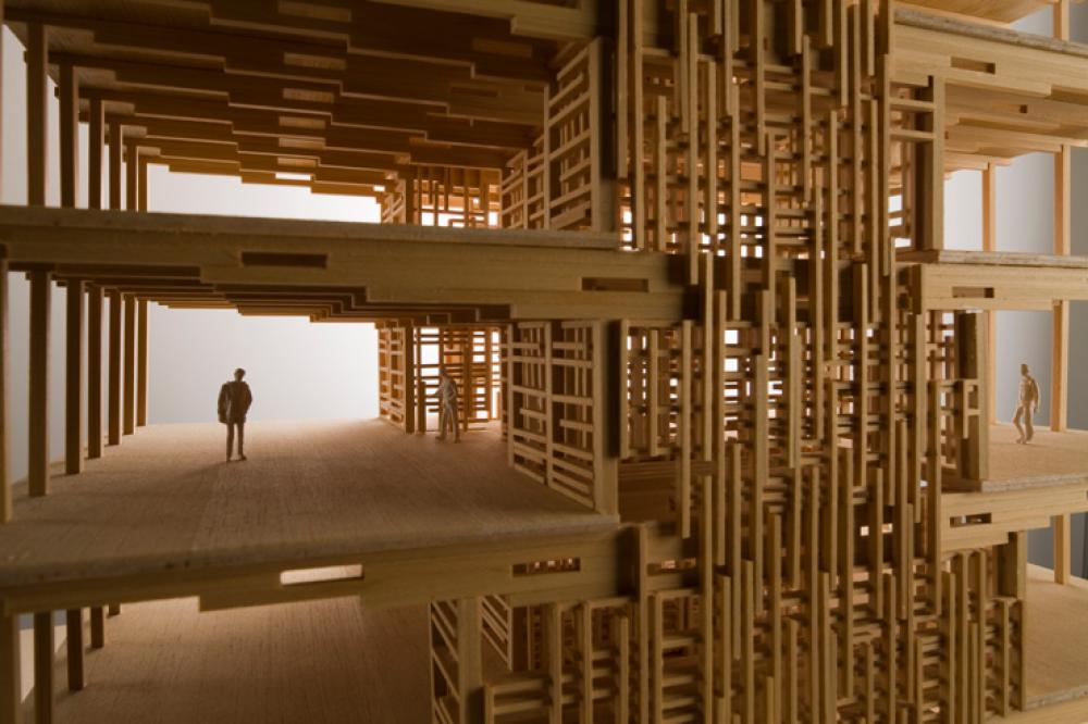 ここに現れる樹木は柔らかくも堅牢なひとつの生命体である。そして、独立した構造体である。本プロジェクトの立体格子のアイデアを発想し、練り上げていく過程で、この立体格子の森が、それらの象徴たる「巨大な樹木」に重なった。