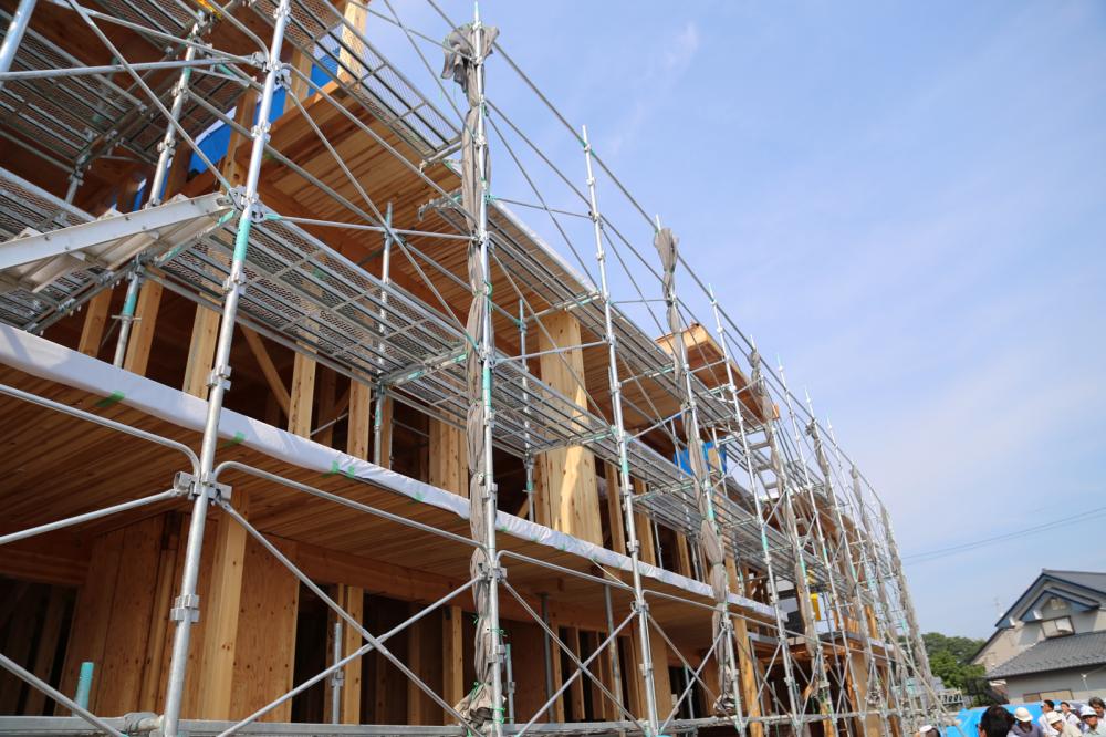 矢吹町中町第一災害公営住宅『木造軸組と集成材厚板パネル床の建て方見学会』