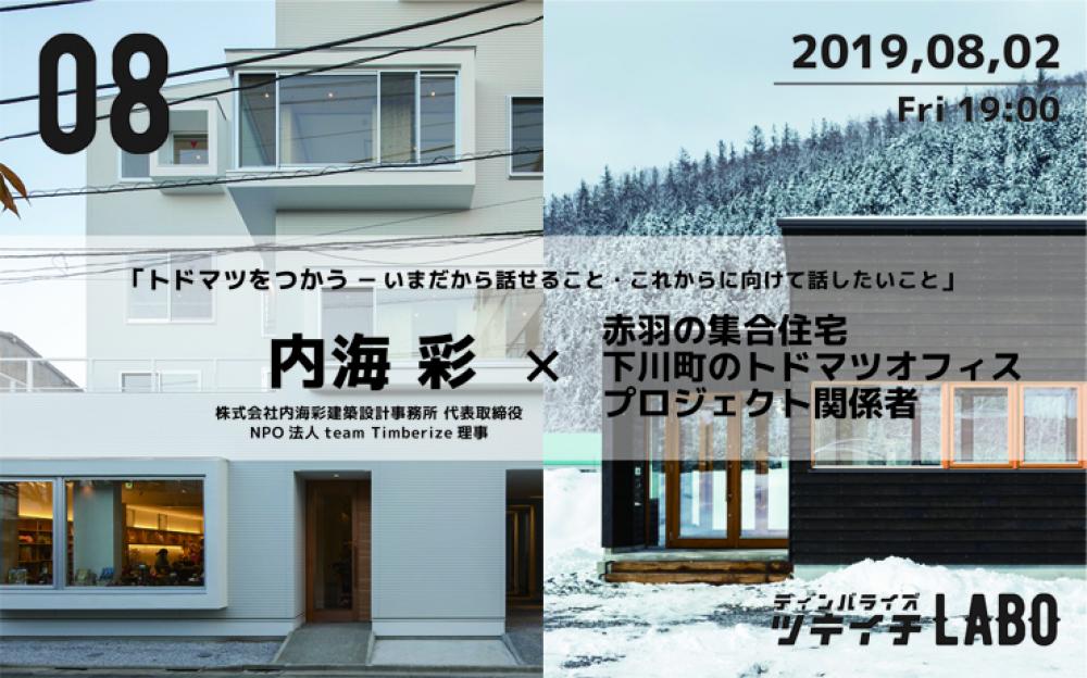 この回では、トドマツを使ったふたつのプロジェクト(赤羽の集合住宅と下川町のトドマツオフィス)の関係者を中心に、トドマツを知る川上から川下までの様々な業種の人がつどい、トドマツってどんな木?という話から、森のことや林業のこと、建築や家具に使ってみての話・これからどんなふうに使っていったら楽しそうなのか、自由きままに語り合いたいと思います。