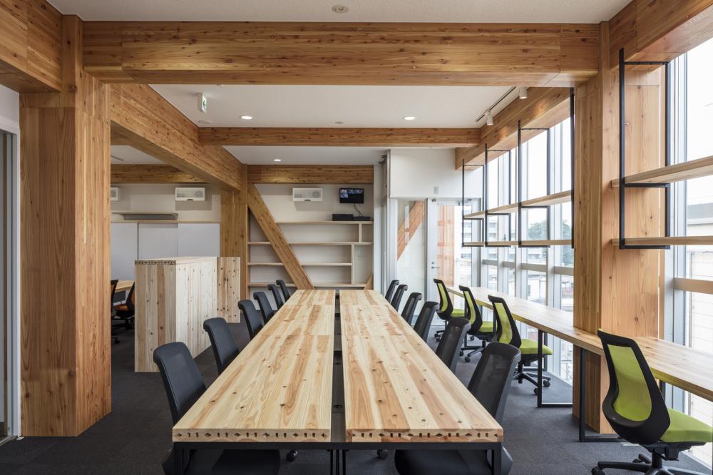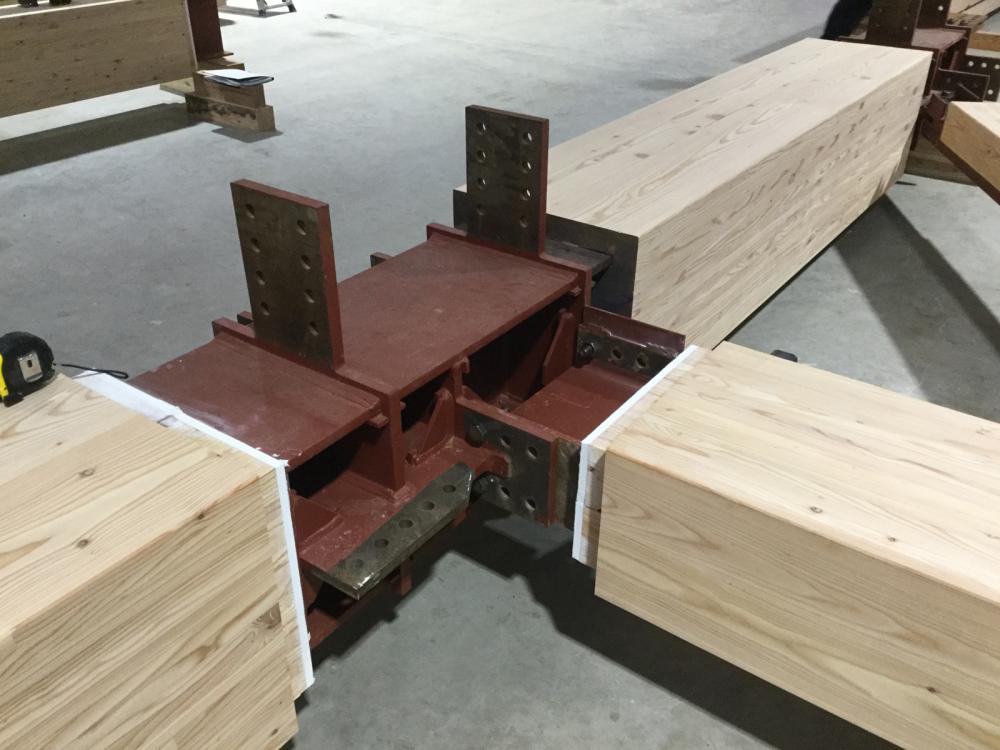 木質ハイブリッド集成材のこれまでの採用例では、2時間耐火との境界部分に課題があり、解決策を見出しておらず、オール鉄骨造とした例はなかった。また、複雑な集成材製作過程によりコストも増大していたため、高層化、一般化への道が閉ざされていた。本件では、耐火検証試験を行って、オール鉄骨造を実現するとともに、木質ハイブリッド集成材と一般耐火被覆を同一階で混在できるようにした。鉄骨接合部にはノンブラケット工法を採用し、集成材工場での製作を簡易化、運搬を効率化し、コストダウンに繋げた。3つの技術改良と工夫により、上層4層ハイブリッド造は、何階建てでもすぐに実現できるモデルとなった。日本のどこででも、誰でも木造ビルが建てやすくなるはずである。新しい技術を開発していくのでなく、開発済みの技術を改良し市場が使い易いモデル=スタンダードを目指したのだ。