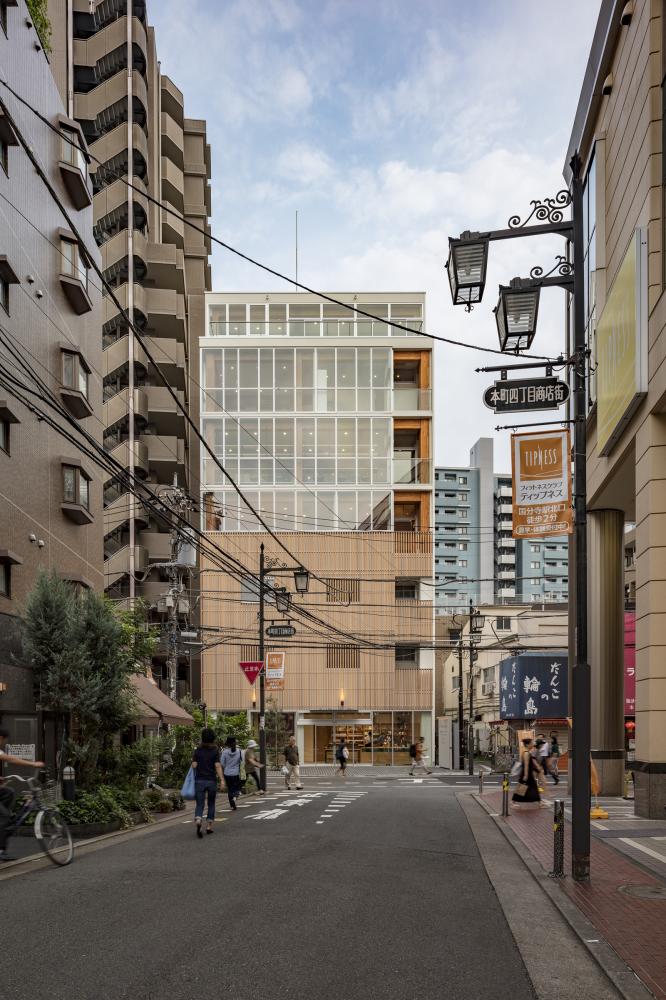 木材利用活性化のためにも、大消費地である都市での高層建築、そして民間の事業者による木造をもっと増やしたい。そんな思いを、施主と施工者との強力なタッグで実現した、国分寺駅そばの商店街に建つ国内初の7階建木質ハイブリッドビルである。施工も設計もしやすい適正なコストを実現した「普及型ハイブリッドモデル」だ。