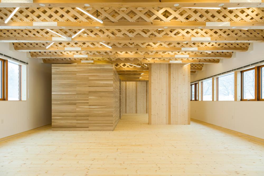 木造の組立梁は案件ごとの複雑な計算など設計の負担も大きいが、必要なデータの整備・共有が進めば、地元の設計者と施工者の手で、その地域の材料からスパンの大きな建築物もつくることができる。下川町プロジェクトでは、汎用性の高い学校教室程度のスパンに挑戦したが、今後更に、トドマツの豊富な蓄積量を背景に、トラス・ラティス梁の設計要領・スパン表等と部材をパッケージにしたパーツキットの輸出等も検討できるだろう。