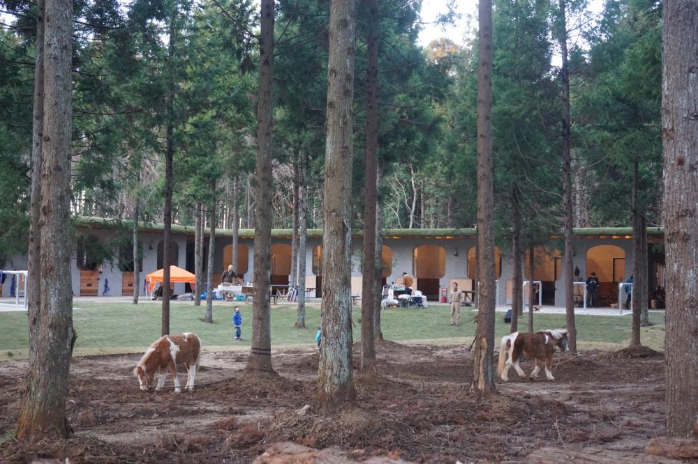 東京クラシッククラブ ゴルフ場に併設されるクラインガルテン管理棟と厩舎。クラインガルテン管理棟は、プリミティブながら上質な空間となるよう、RCによる細い柱と梁(ともに見付300mm)で構成している。杉板を用いた型枠にはPコンを用いずアングル架台で固定し、雑味のない綺麗なテクスチャを実現した。 建築データ 延べ床面積:800㎡ 建築規模:2階建て 構造:RC造、木造 意匠設計:古谷デザイン 構造設計:KAP