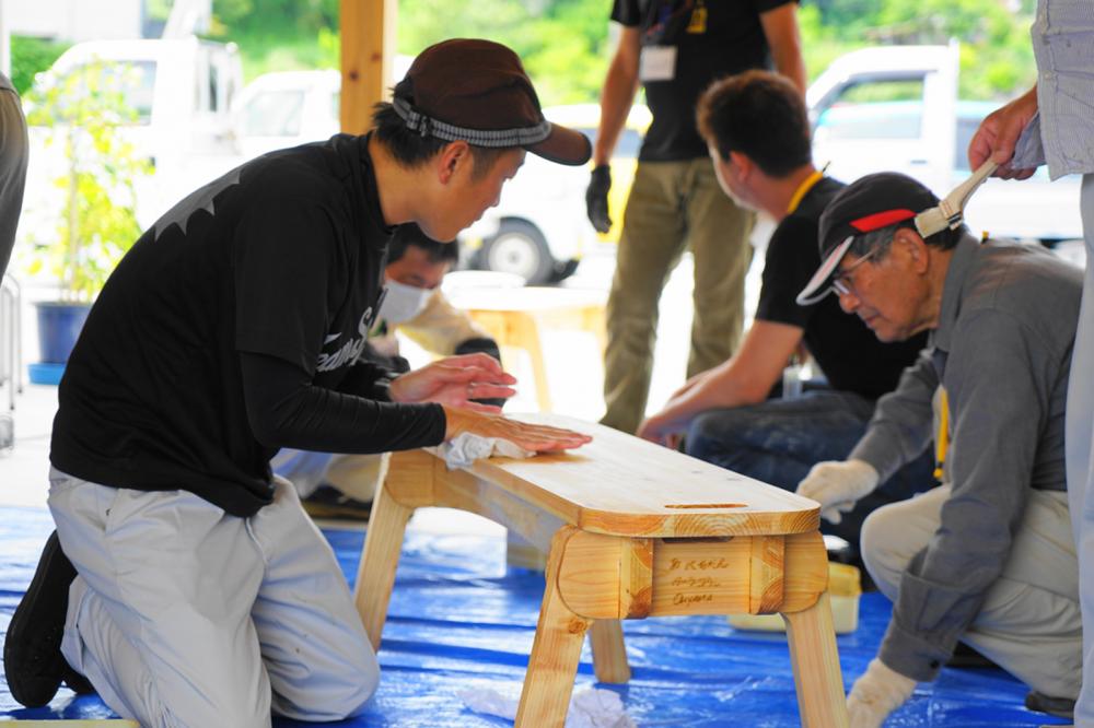 高知県佐川町でみんなで使うベンチを一緒につくるワークショップを開催しました。