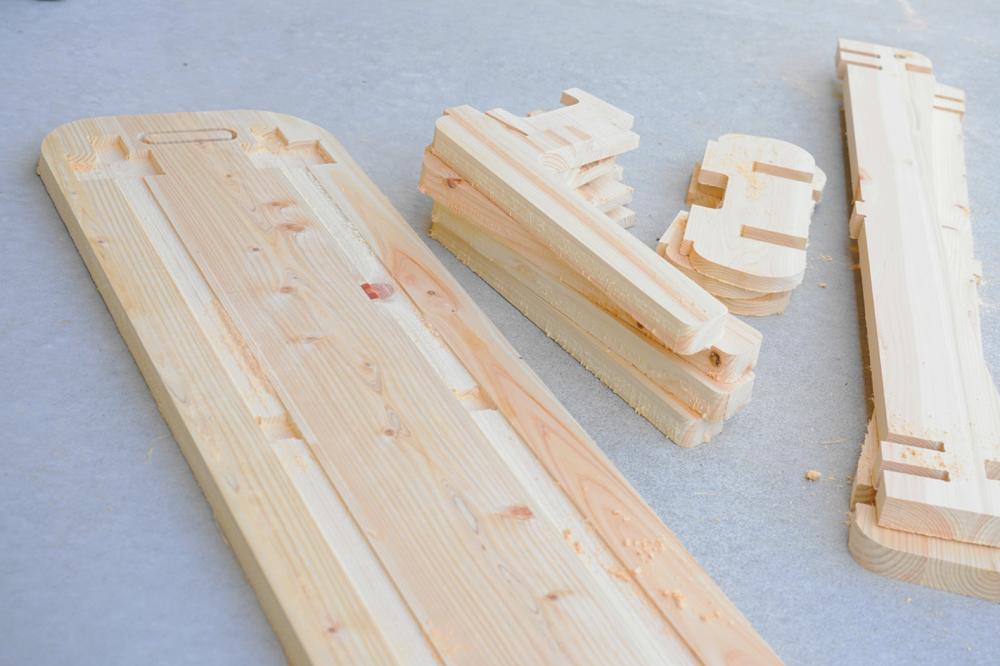 佐川町産のヒノキ材を使い、製材から加工まですべての工程を町内で行った”さかわ生まれ”のベンチです。 加工は佐川町に導入されている「ShopBot」という木工用CNCルーターで行いました。「ShopBot」を生かしたベンチキットのデザインは山田敏博(株式会社 HUG、NPO法人 team Timberize 理事)です。