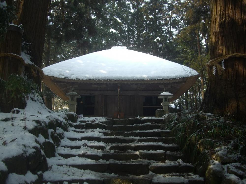 地蔵堂の姿を模索すべく、まずは高蔵寺阿弥陀堂を訪れる。宮城県白石蔵王から奥へ。雪深い角田市にある。シンプルな茅葺き屋根と簡素な組物の構成が美しく、内部の阿弥陀如来像と架構のバランスも素晴らしい。素朴な御堂は胸を打つ。