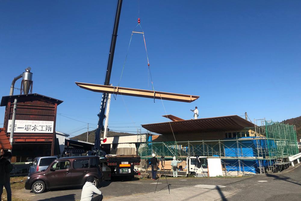 有限会社一場木工所が平成30年7月豪雨の被災を受け、広島県中小企業等グループ施設等復旧整備補助事業により、木造1階建てショールーム兼室内作業場を建築中です。