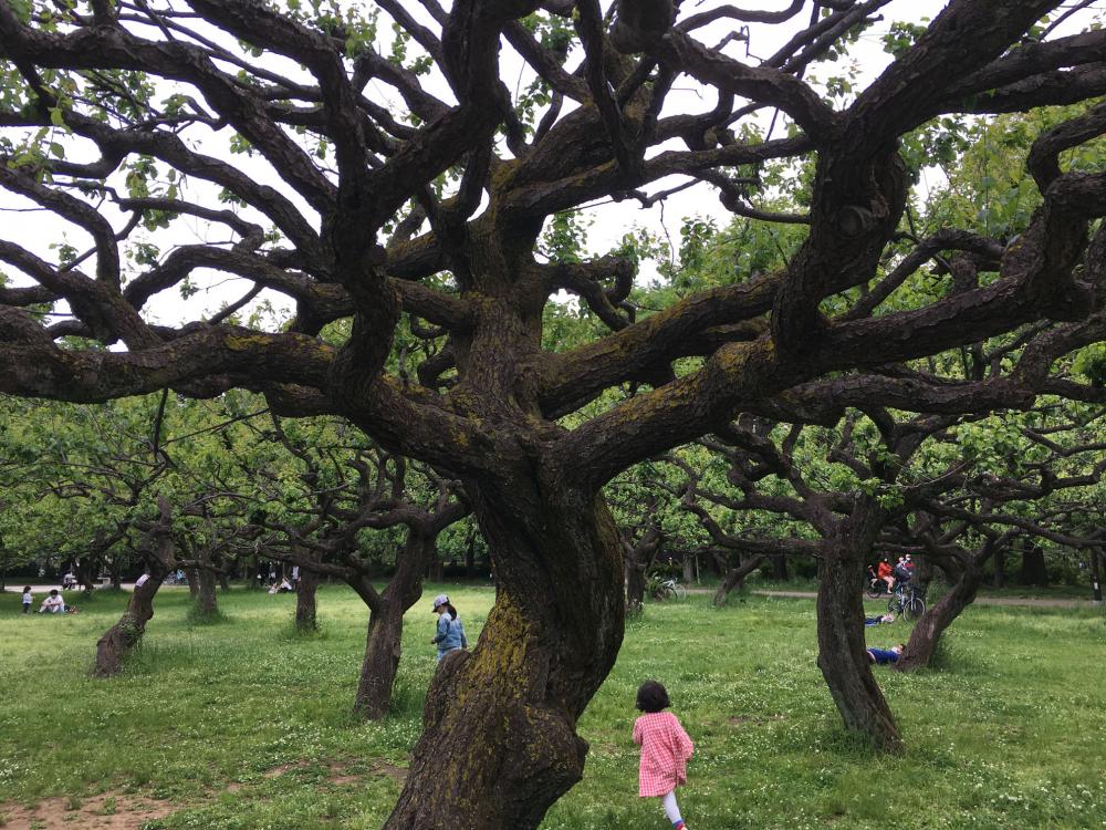 近所の大きな公園の中に手入れの行き届いた梅林がある。休日にその下で家族と過ごすことがあるのだが、よくよく見てみると大変奇妙な形の枝ぶりになっている、なにがおきてこうなるのか!?と見れば見るほど不思議で複雑な形態に驚いてしまう。花も実も楽しめる梅の木だが、ちゃんとした剪定方法があるらしく、枝は短いほうが多く実がなるため、花後は長枝を切り落とす、そして収穫後の剪定に加えて、冬季は樹形を整えるために枝を切り、と比較的早く成長する梅の木にあわせて剪定される。時間をかけて幾度も人の手が加わることで、生命的なものと美的なものとが均衡しつつ、自然の中に新しいかたちが発見されて興味深い。