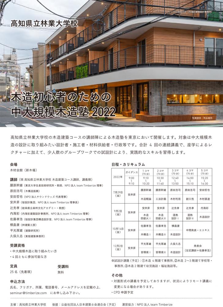 高知県立林業大学校「木造初心者のための中大規模木造塾2022(東京)」参加者募集について