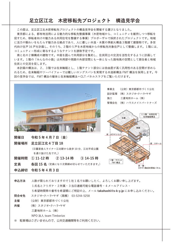 この度は、足立区江北木密移転先プロジェクトの構造見学会を開催する運びになりました。
