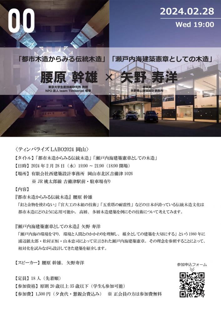 ティンバライズLABOの特別編が岡山で開催されることになりました。