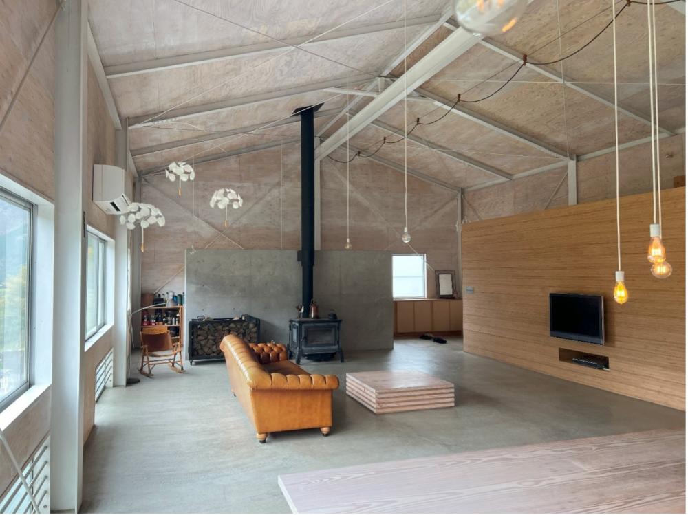 ちょっと先端的な木造からは外れるかもしれませんが、最後にご紹介するのは同じく智頭町にある「House Base」です。設計はPLUS CASA、竣工は2016年です。倉庫をリノベーションして設計者のオフィス兼住宅にしたものです。縁あって内部を見学させてもらったのですが、設計者の美意識を感じさせる、ほぼ生活感の無い内部空間に圧倒されました。