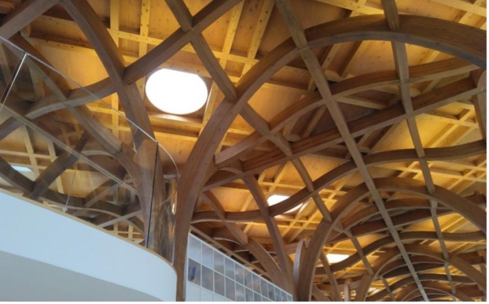 由布院駅に降り立つと高さ12mの吹抜けをもつコンコースと、ゆったりとした待合室が迎え入れてくれます。コンコースは湾曲集成材によるクロスボールトの木質屋根が架けられていて、文字通り由布院のシンボルとなっています。待合室は同じく湾曲集成材を使用し、テンションバーを組み合わせたハイブリッド構造の木質屋根架構です。ゆったりとしたスペースの壁面には地元作家のアートが飾られ、単なる待合室としての機能を越えたあたたかい空間が実現していました。